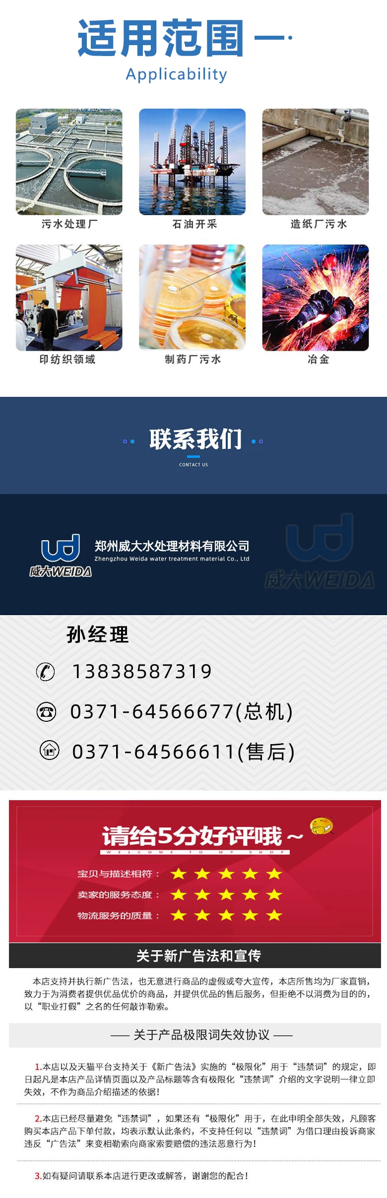 鄭州威大水處理材料有限公司是一家集研發與生產為一體實體企業,主要生產:緩蝕阻垢劑、循環水阻垢劑、反滲透阻垢劑、無磷阻垢劑、除垢劑、防垢劑、重金屬捕捉劑、螯合劑、銅緩蝕劑、反滲透清洗劑(酸堿)、有機硫、非氧化殺菌劑、氧化殺菌劑、還原劑、脫硫增效劑、銅緩蝕劑、飛灰熬合劑、氨氮去除劑,聚丙烯酰胺,聚合氯化鋁,消泡劑、芳香型純植物除臭劑,活性炭,次氯酸鈉,葡萄糖等;可訂做!可貼牌加工,財富熱線:18768886965。